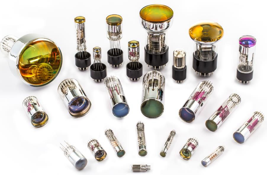 光電倍增管(Photomultiplier Tube,簡稱PMT)是一種真空玻璃器件,可將光信號轉化為電信號,因超高靈敏度和快速響應等特點備受關注。在檢測光譜方面,其可探測約100nm~1μm范圍內的光信號。此外,在更短波方向,如γ射線、X射線探測使用的輻射探測器,以通過各種閃爍體轉化成可見光,然后再通過PMT進行檢測,其關鍵器件也是PMT。
