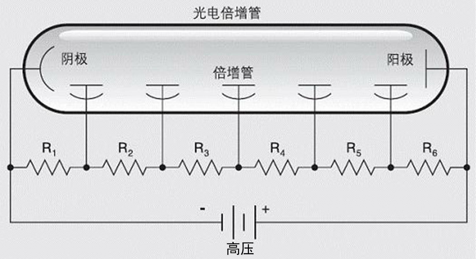 光電倍增管(Photomultiplier Tube,簡稱PMT)將光信號轉化為電信號,后續(xù)需要配合相應附件及電路,如管座、分壓器、高壓電源等,才能使電信號正常輸出并處理。