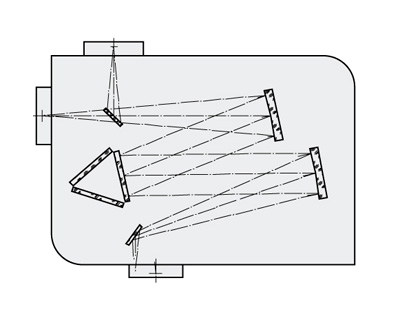 雙出口光譜儀,垂直出口安裝CCD,平行出口安裝狹縫,電動切換 |