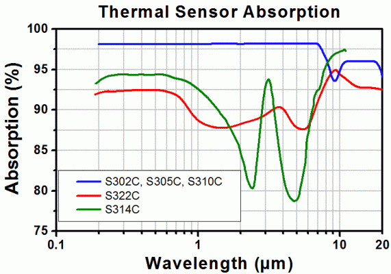 · 熱功率探頭: 這些熱電堆探頭由在超寬波長范圍內光譜響應相對平坦的材料制成,它們適用于寬帶光源( 例如LED和SLD)的功率測量。熱功率探頭的輸出電壓與輸入光功率成正比。