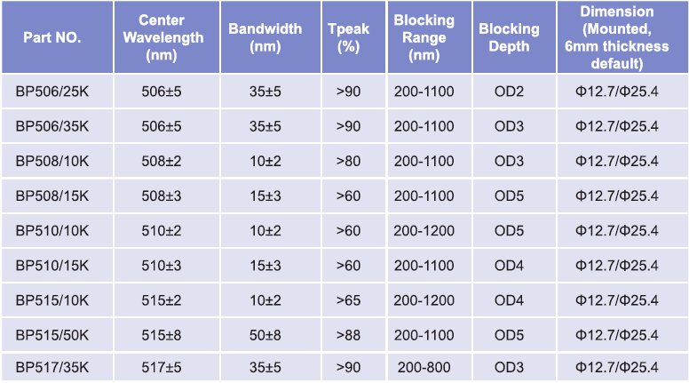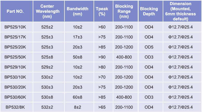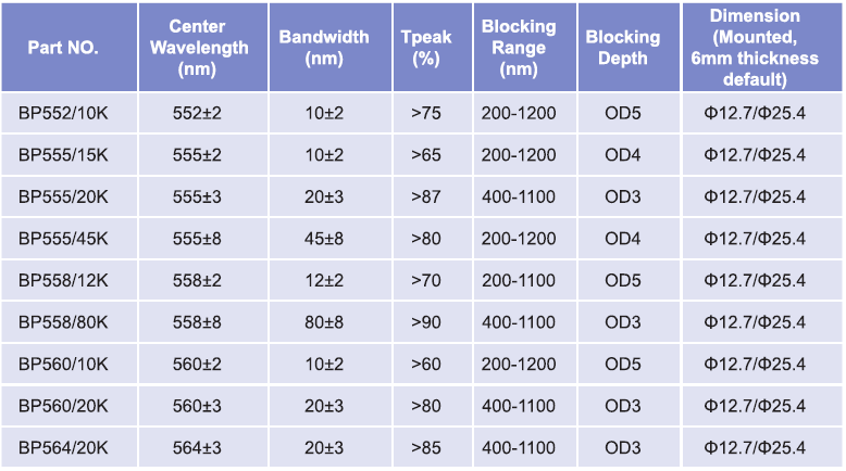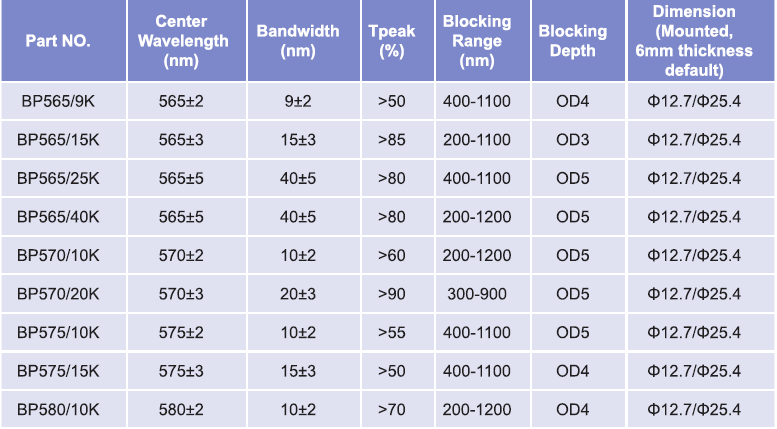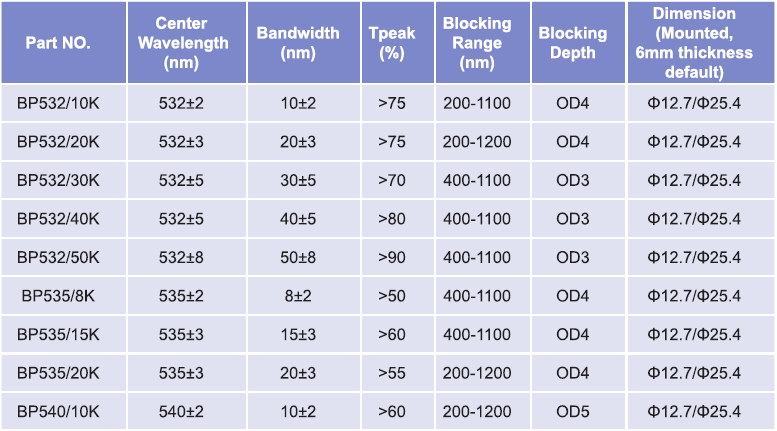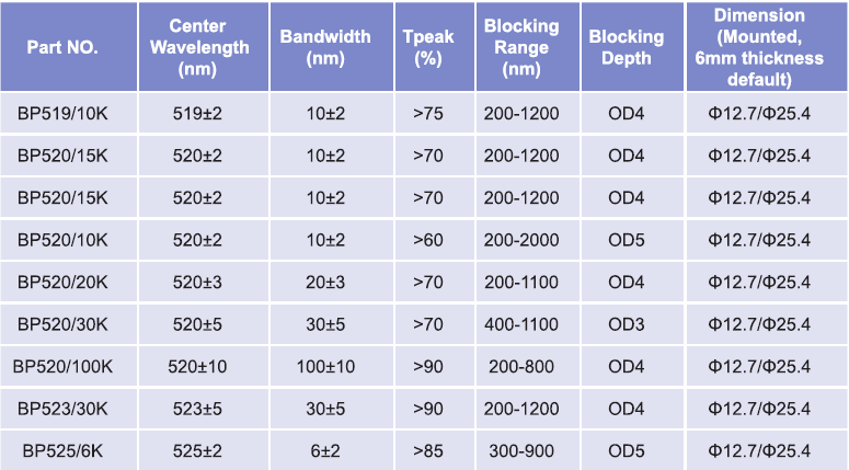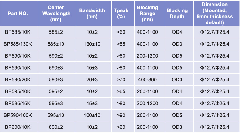 4、庫存:上萬種標準及非標準帶通濾光片產品現貨供應